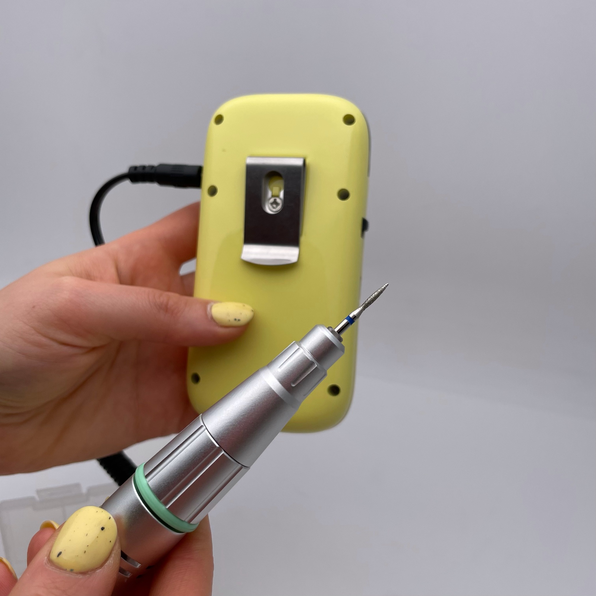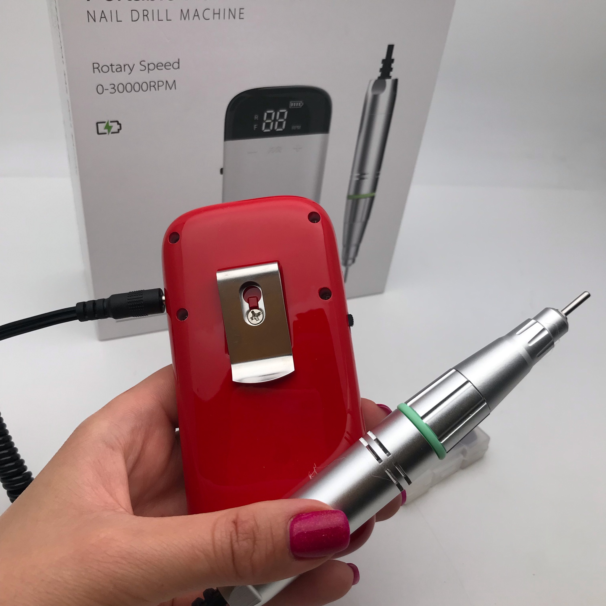 Портативный, стильный и легкий фрезер на аккумуляторе JIMDOA 107 – это идеальное решение для домашнего использования, путешествий и для мастеров, работающих на выезде. Работает до 7 часов при полном зарадке аккумулятора. Есть usb порт, чтобы подключить к повербанку. На задней панели есть удобная клипса, чтобы прицепить к поясу.
